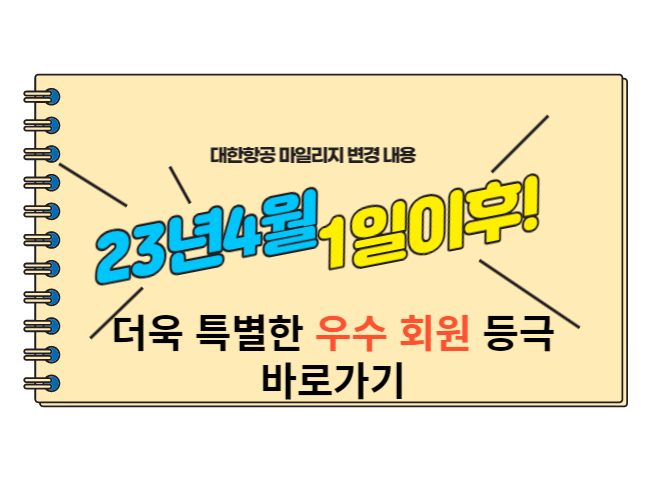 대한항공 마일리지 변경 내용(23년 4월 1일 이후부터) 마일리지를 모으기 위해 항공사들만의 적립하는 분야다 다 다를 것입니다. 요즘 항공사로부터 로열티에는 마일리지가 큰 몫을 하고 있다고 생각합니다. 해외여행을 가시는 분들에게 마일리지는 정말 더욱 특별하게 느껴지실 겁니다. 어차피 여행 가는 거 마일리지를 쌓아서 다양한 회원등급별로 우수한 회원이 되어서 다양한 혜택을 받으시면 더욱 좋을 것이라 생각됩니다. 즐거운 여행도 즐기고 우수 회원도 되고 1석2조가 되겠죠?