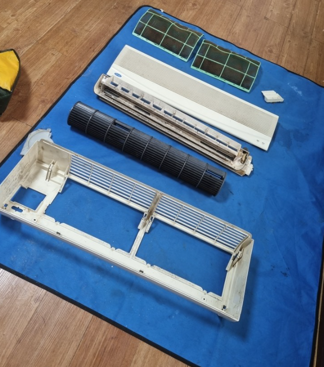 1. 에어컨을 먼저 분해하고 먼지나 오염물질이 많이 쌓인 필터를 냉매 유동관 등에 분해 합니다.